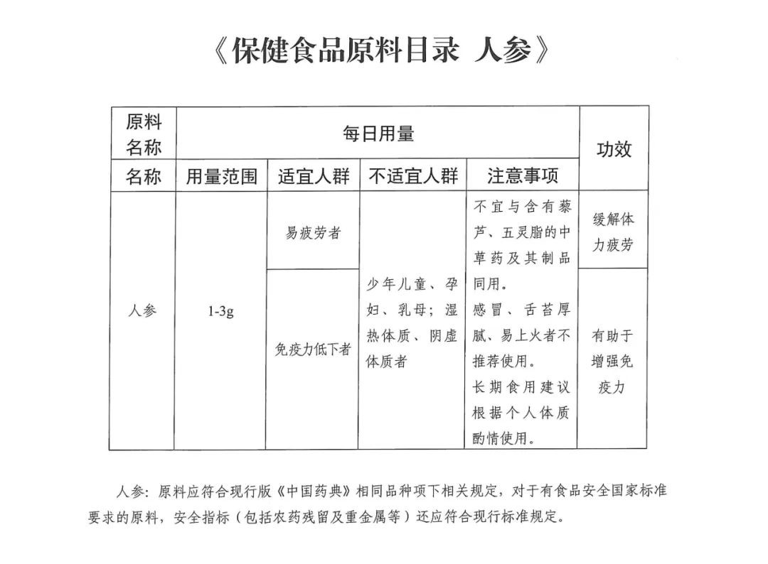 关于宣布人参、西洋参、灵芝3种保健食物质料目录的通告(自2024年5月1日起施行)